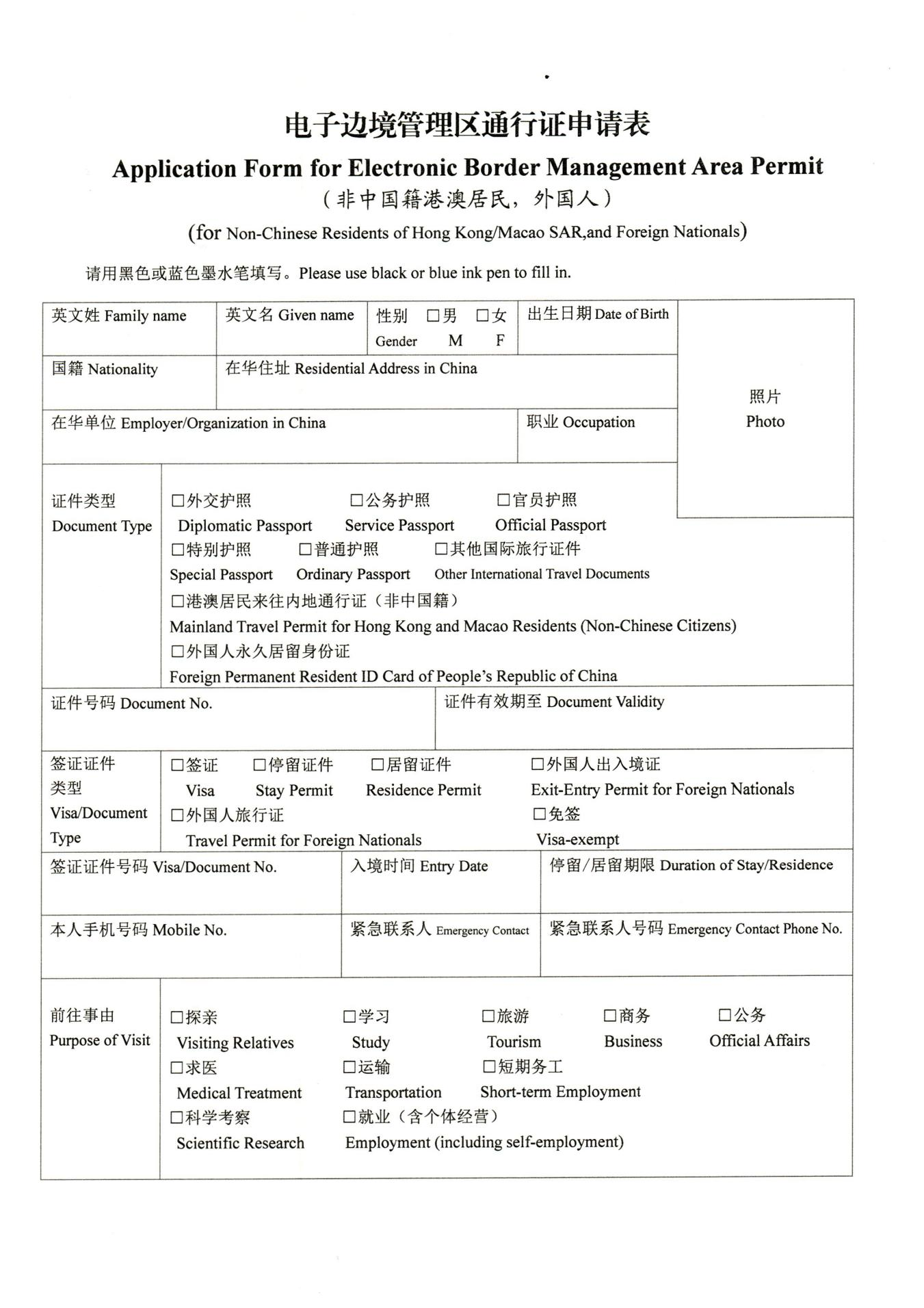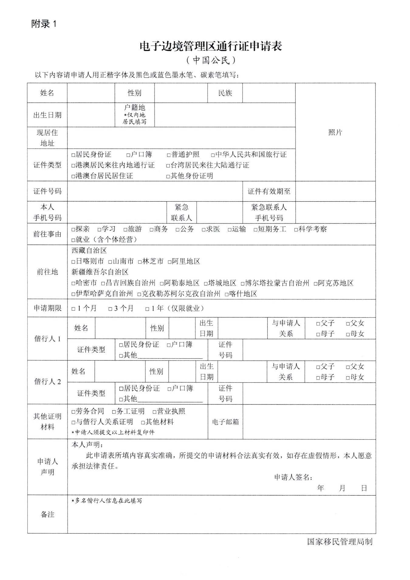 (二)填写完整的《电子边境管理区通行证申请表》;