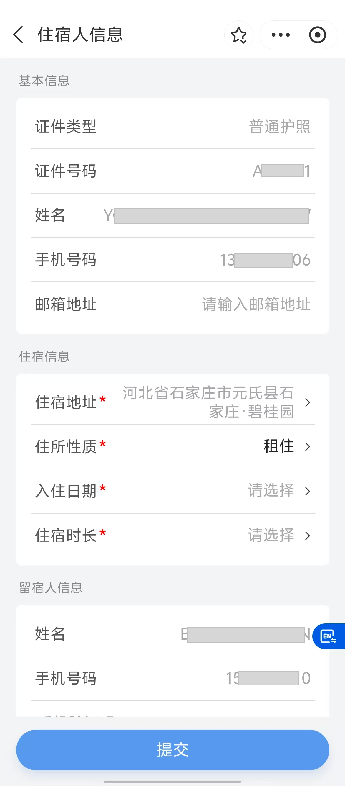 (二)住宿人信息确认