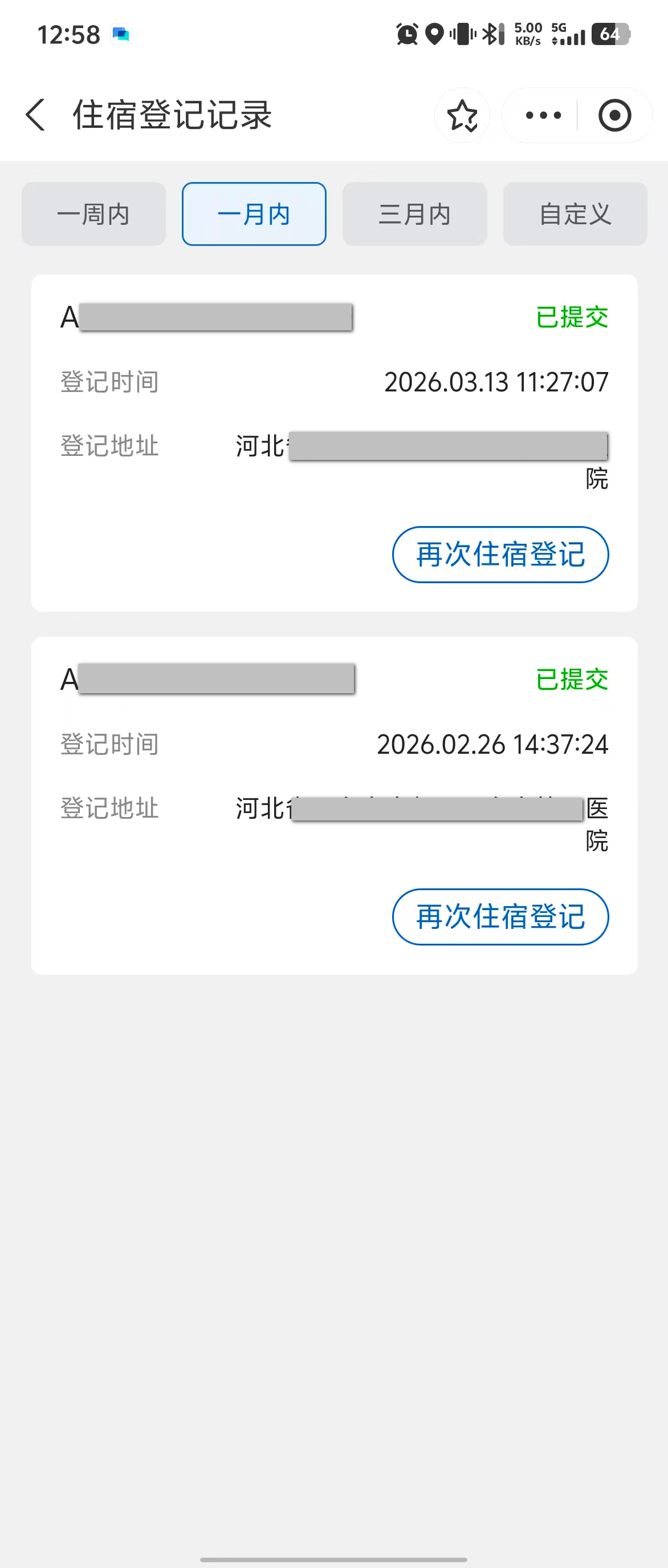 1.点击“再次住宿登记”